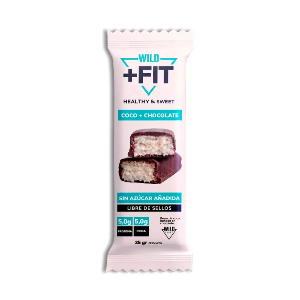 Barrita rellena de coco bañada en chocolate bitter sin azúcar añadida